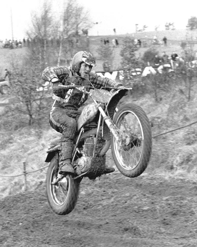 We love these shots of Jim in action. Especially the splendid Nick Nicholls shot from 1974 which shows Jim riding a KTM 360 at a Newbury ‘scramble.’ How far both have come, eh?